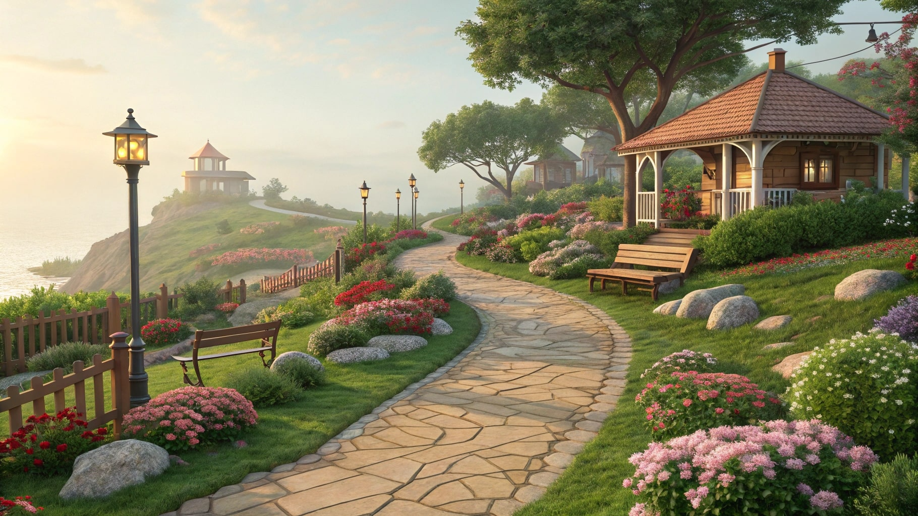 | Flower Mosaic Paths | Flowers, tiles | Gardens, parks | Bright, joyful |