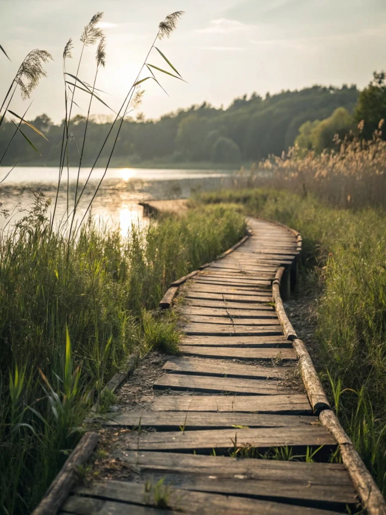 | Wooden Plank Paths | Weathered wood, nails | Waterfronts, docks | Warm, rustic |