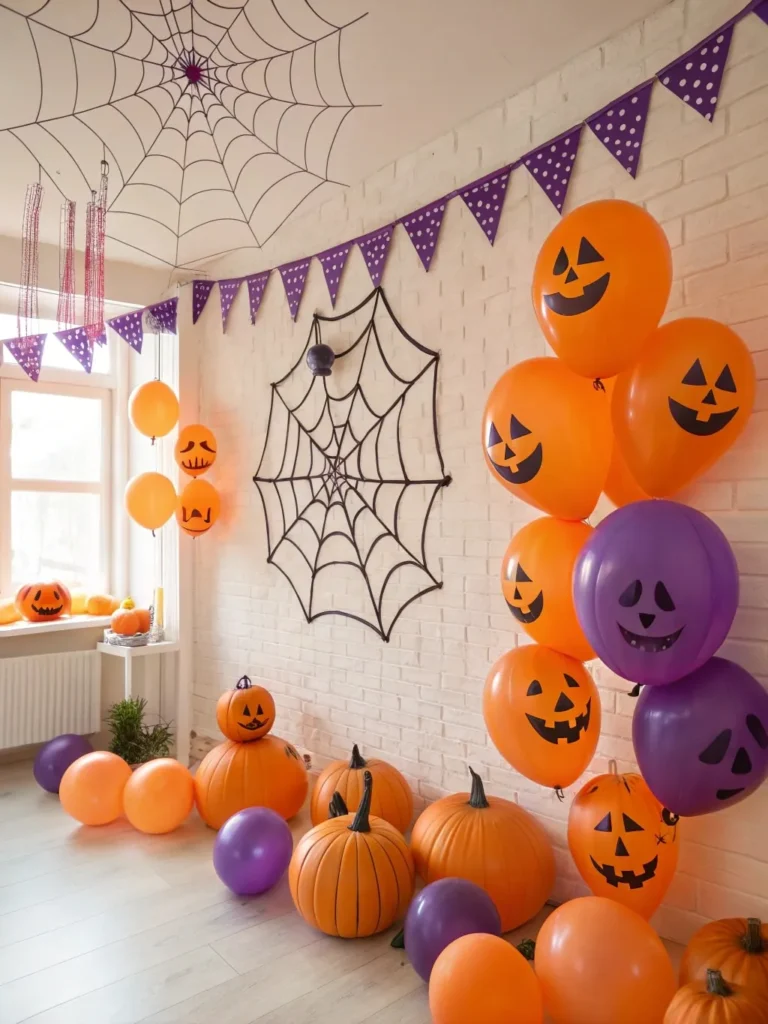 Transform your party space with colorful and friendly Halloween decorations that delight rather than frighten. Bright orange, purple, and black balloons, paper lanterns shaped like jack-o’-lanterns, and smiling ghost cutouts create a warm and inviting environment. Incorporating LED string lights adds a magical glow that kids love.