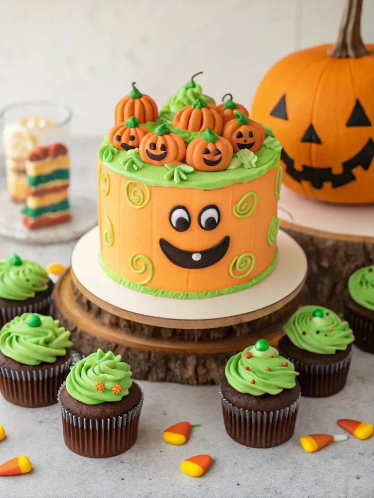 The birthday cake is the centerpiece of the celebration and an opportunity to wow guests with spooky yet kid-friendly designs. Opt for cakes featuring cute pumpkins, friendly ghosts, or smiling witches, decorated with bright, cheerful frosting colors. Cupcakes with themed toppers are also a practical and popular alternative.