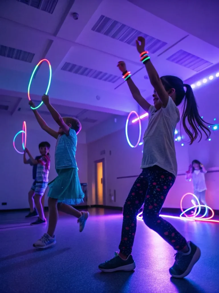 As the party winds down, host a glow stick dance party in a dimly lit room to excite kids with colorful glowing accessories. Providing glow sticks, bracelets, and necklaces lets children safely enjoy the thrill of dancing with light. This creates an energetic and visually stimulating finale.