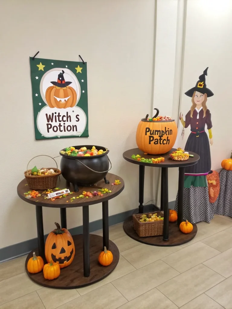 Bring the classic Halloween tradition indoors by setting up multiple trick-or-treat stations throughout your party space. Each station can have a different theme such as “Witch’s Potion” or “Pumpkin Patch,” decorated with props and filled with candy and small toys. This interactive setup keeps kids moving and engaged.