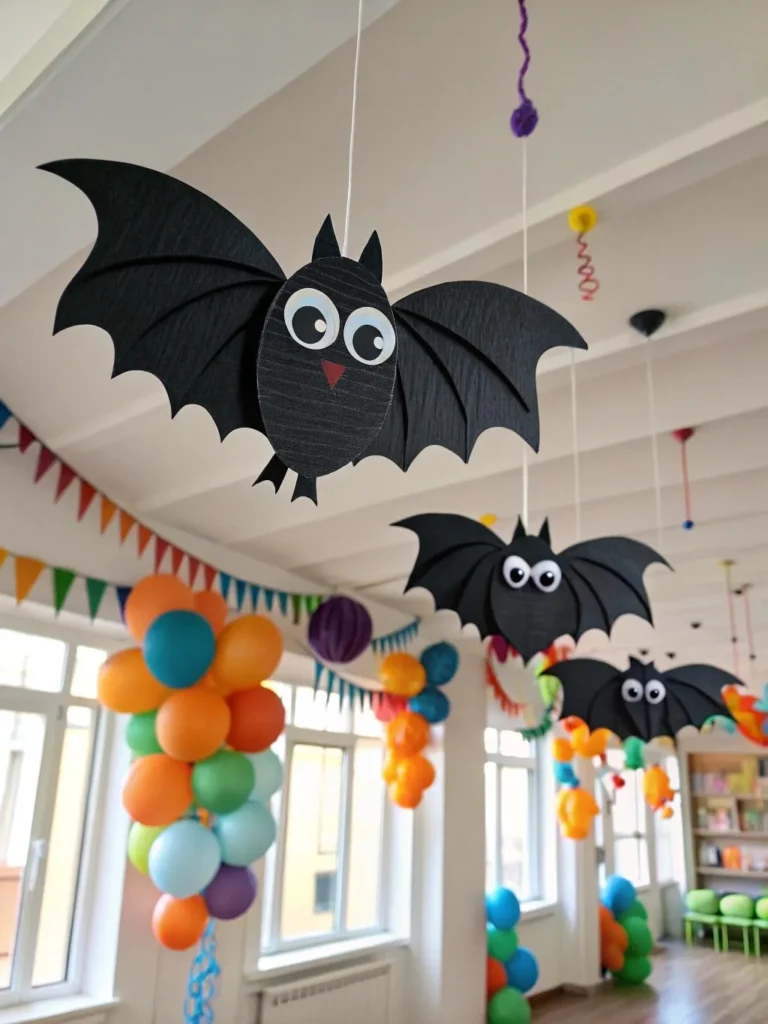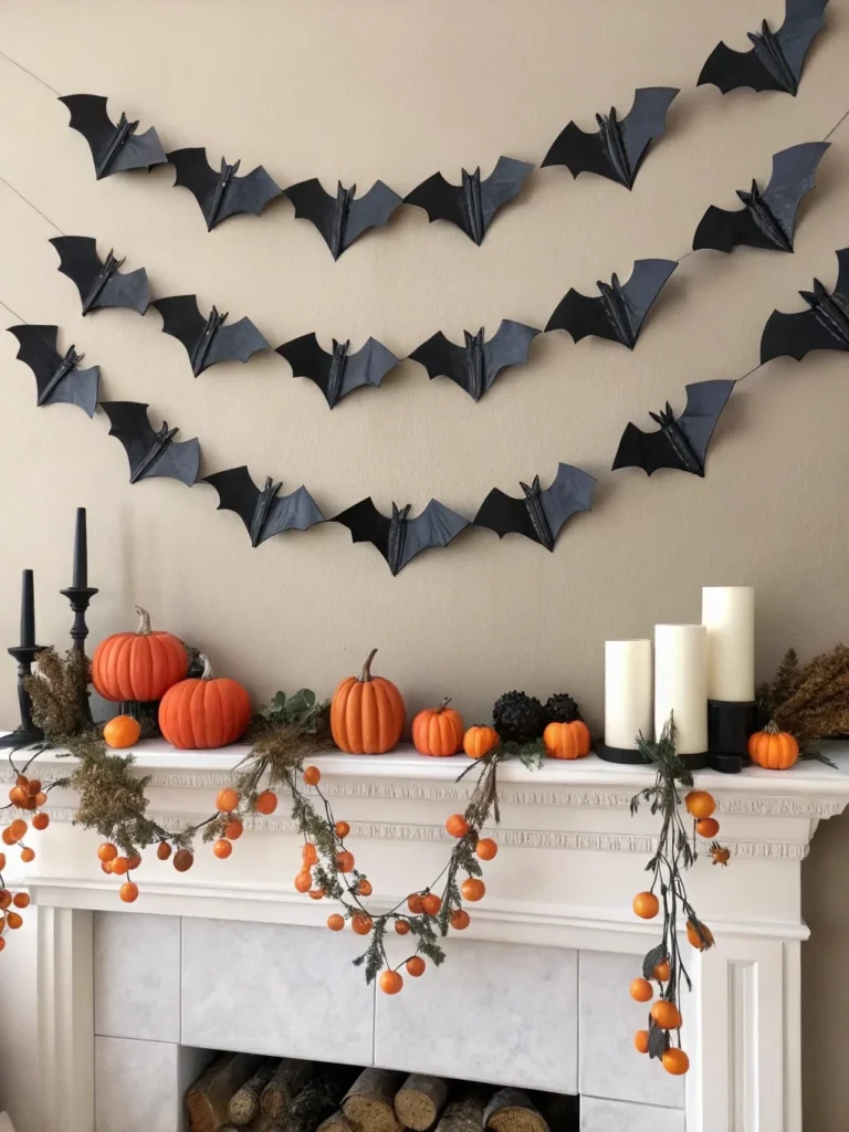 Make a festive bat garland using black construction paper and string. Cut out bat shapes, fold wings slightly for dimension, and attach them evenly along the string. Hang the garland across windows, doorways, or mantels.