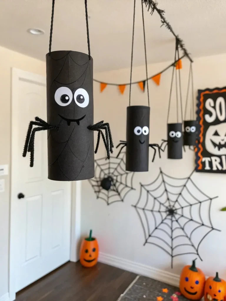 Repurpose empty toilet paper rolls to create creepy-crawly spider decorations. Paint the roll black, add pipe cleaner legs, and glue on googly eyes. These spiders can hang from ceilings or be placed around the house.
