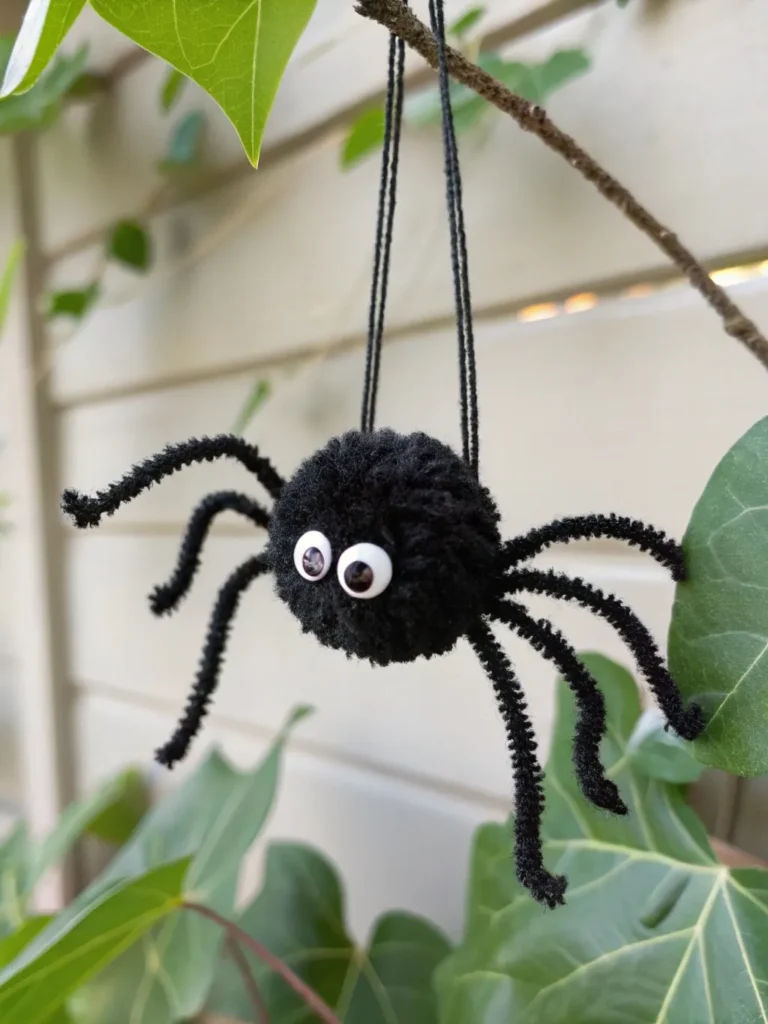 Create fluffy spider decorations using black yarn pom-poms and pipe cleaners for legs. Glue on googly eyes and hang them from strings or place them as table centerpieces. These spiders are cute and creepy in equal measure.