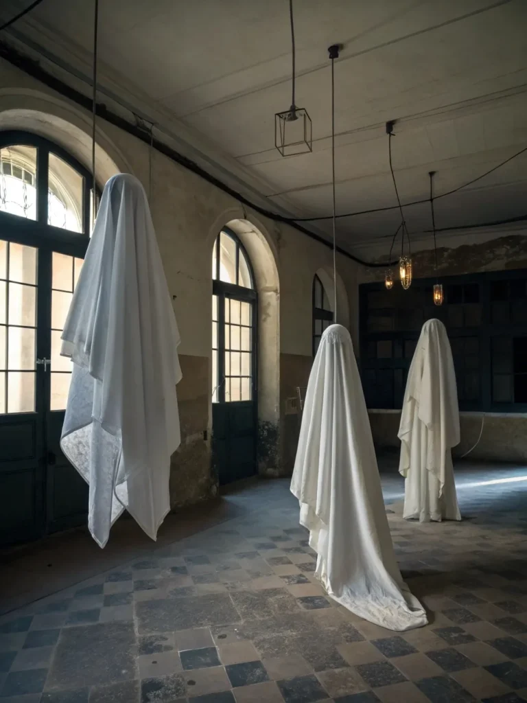 - Hanging Ghosts: Use white fabric or cheesecloth to create floating ghost figures. They can be suspended from the ceiling or hung in doorways for added drama.