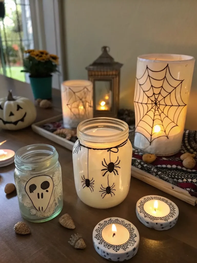 - Jar Lanterns: Use mason jars to create creepy lanterns by painting them with ghostly faces and filling them with LED candles.