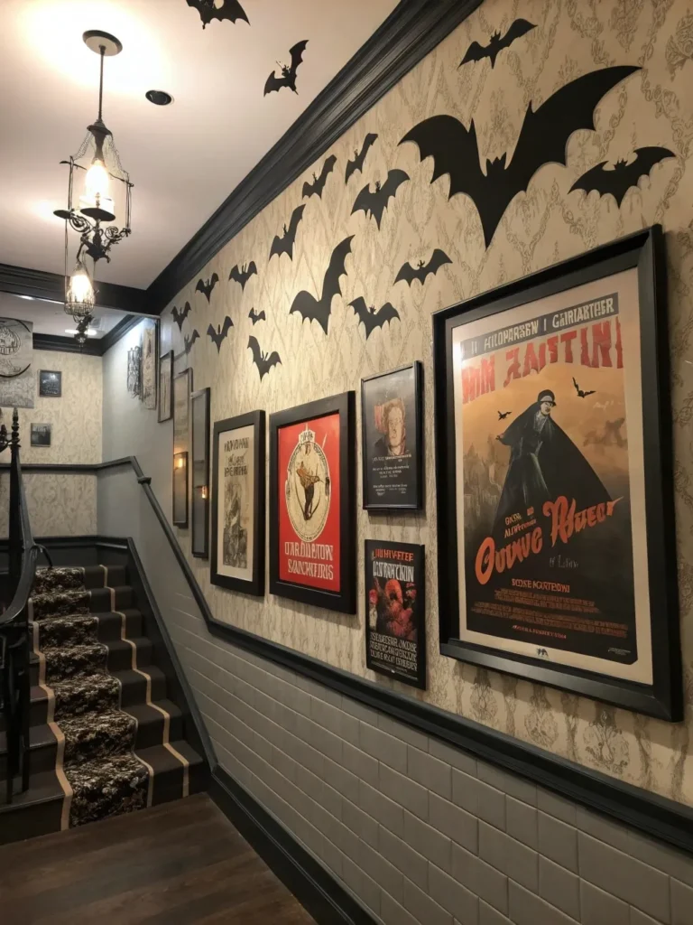 - Creepy Posters: Classic horror movie posters or vintage prints featuring haunted houses, witches, and supernatural creatures add an eerie vibe.