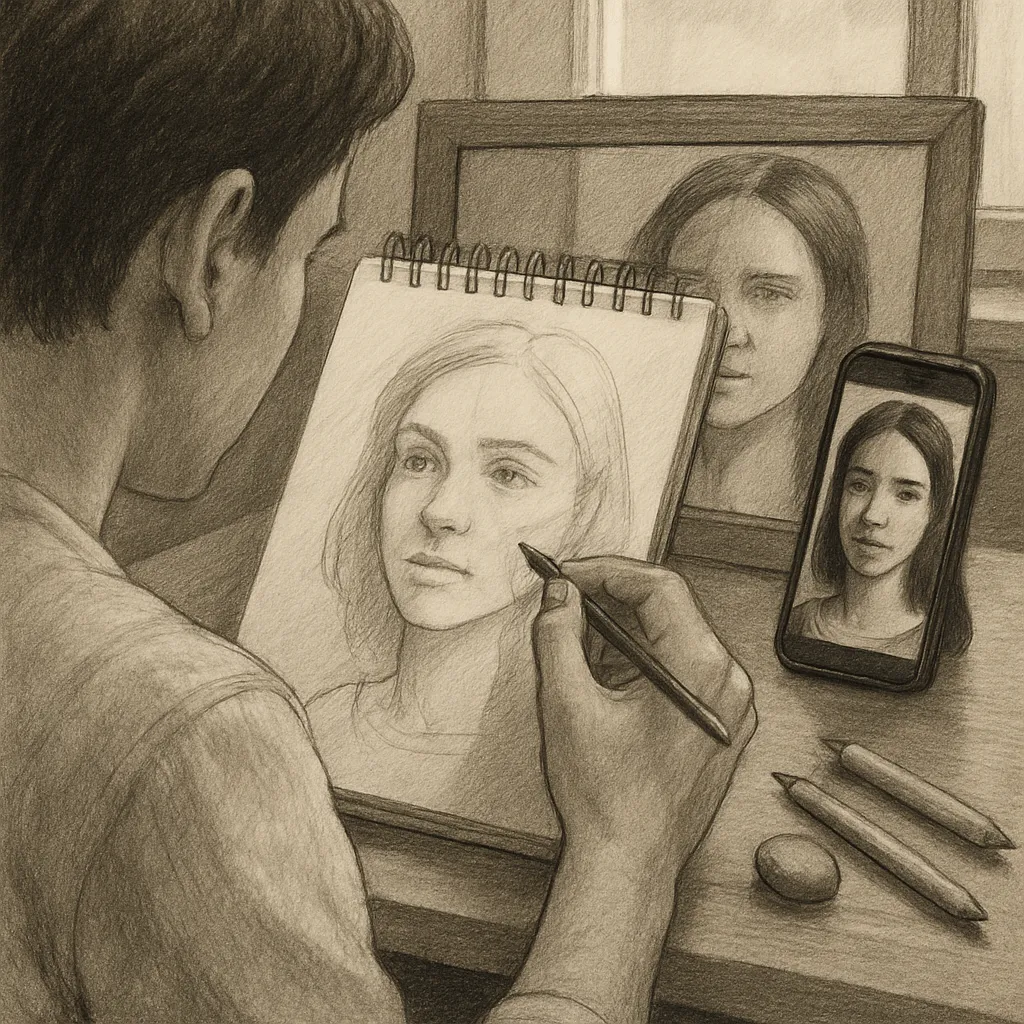 Use photos, mirrors, or even watch people. The more you observe, the better you get at capturing expressions and structure.