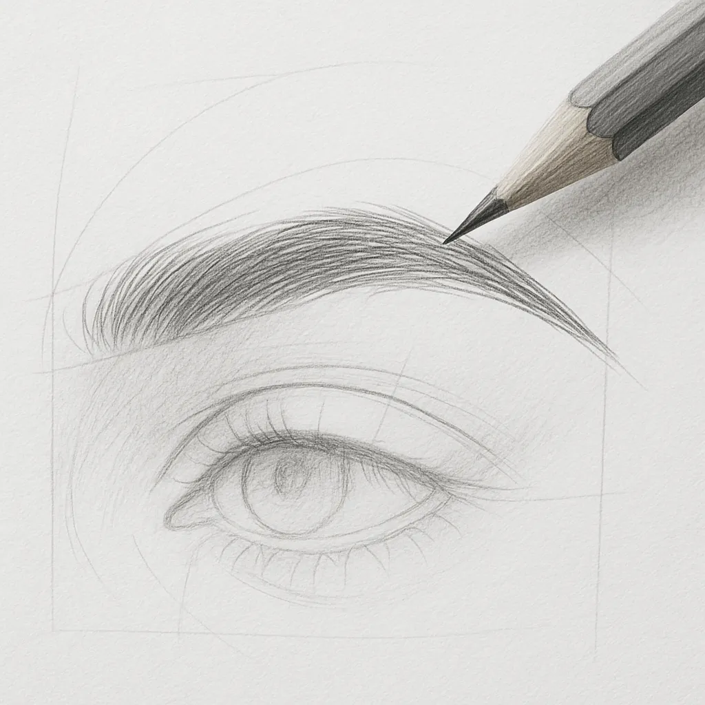 Eyebrows start at the inner corner of the eye and end just past the outer edge. Arch slightly for expression.