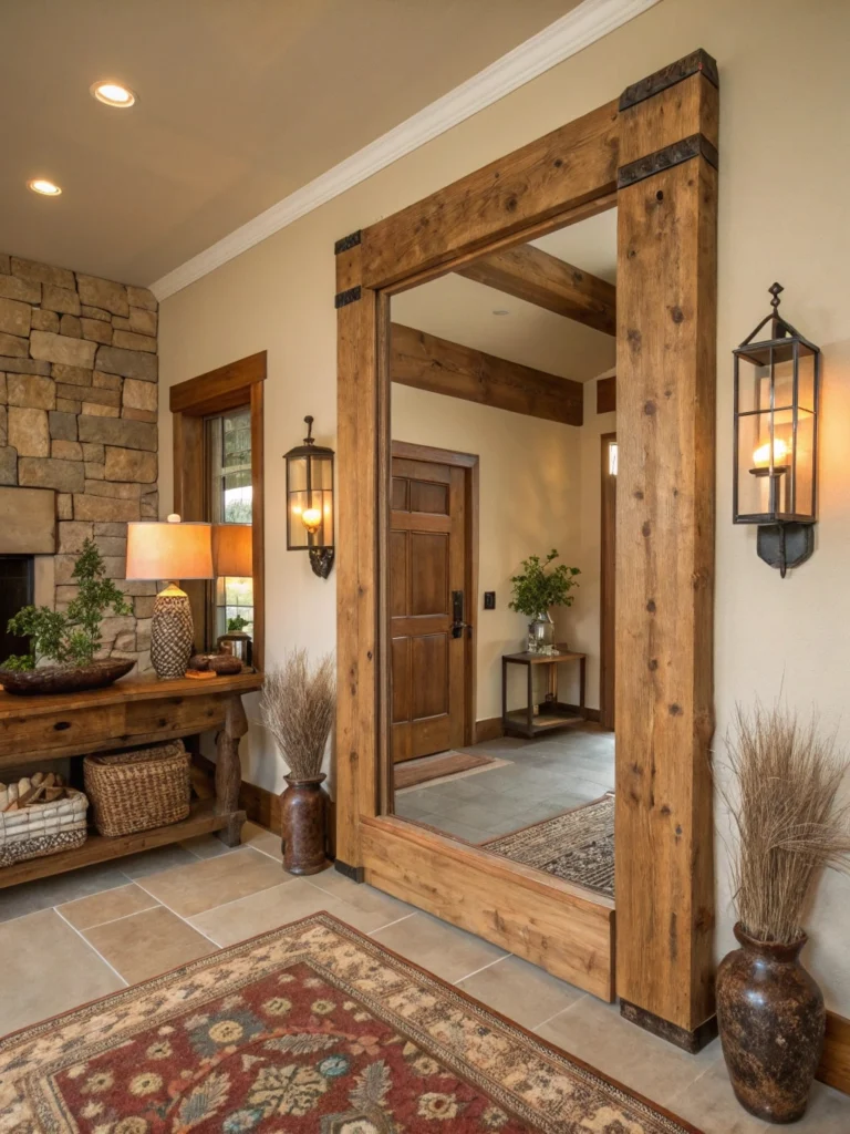 Mirrors in rustic frames add both style and functionality to your space. Whether it’s a large wooden-framed mirror in the hallway or smaller frames on the walls, rustic mirrors reflect light and open up the space while adding texture and character.