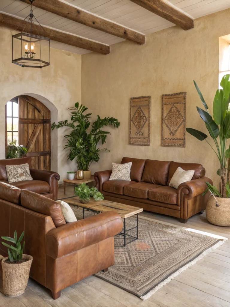 Neutral and earthy color palettes are key to achieving a rustic look. Shades of brown, beige, gray, and green create a calming and organic feel. These colors blend seamlessly with natural materials like wood, stone, and leather, ensuring your space feels warm and inviting.
